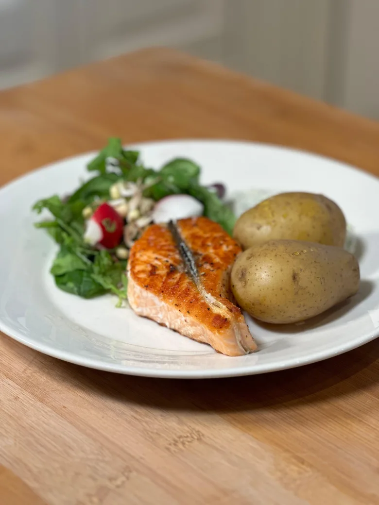 Paistettu lohimedaljonki ja Remoulade kastike
