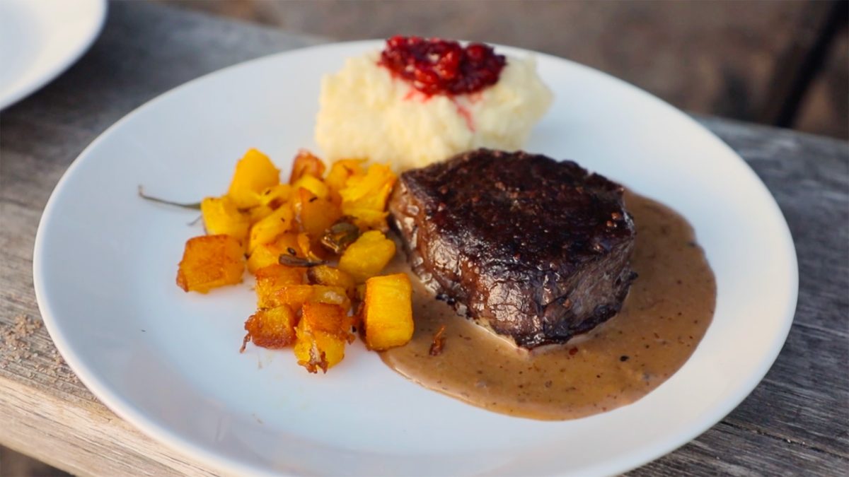 Jaloviinalla liekitettyä hirven ulkofileetä