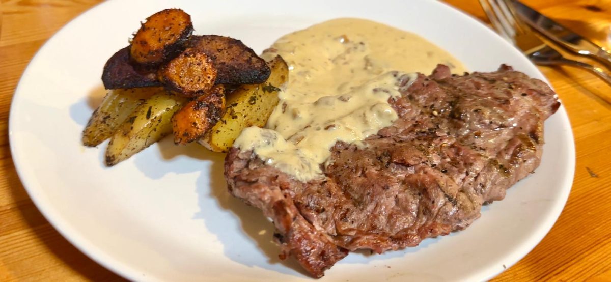 Jaloviinalla liekitettyä poron kieltä ja puikulaperuna muusia